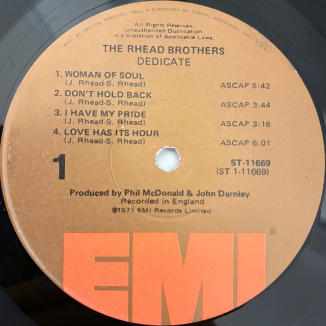 78年リリースの幻のAOR〜ライトメロウのレア名盤Black Shaheenで知られるJohn RheadとSteve Rheadによる兄弟デュオRhead Brothersが77年に残した1stアルバム!こちらもライト・メロウ・ファンには大変人気の高いキラーAORな最高アルバム!
