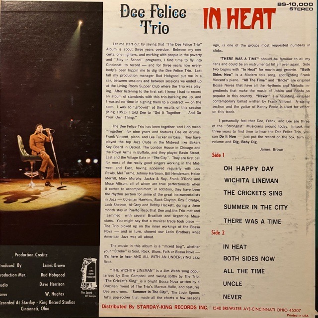 James Brownがプロデュースを手がけたことで知られる、オハイオ州シンシナティ出身のジャズ・ドラマーDee Felice率いるピアノ・ジャズ・トリオによる名作『In Heat』!