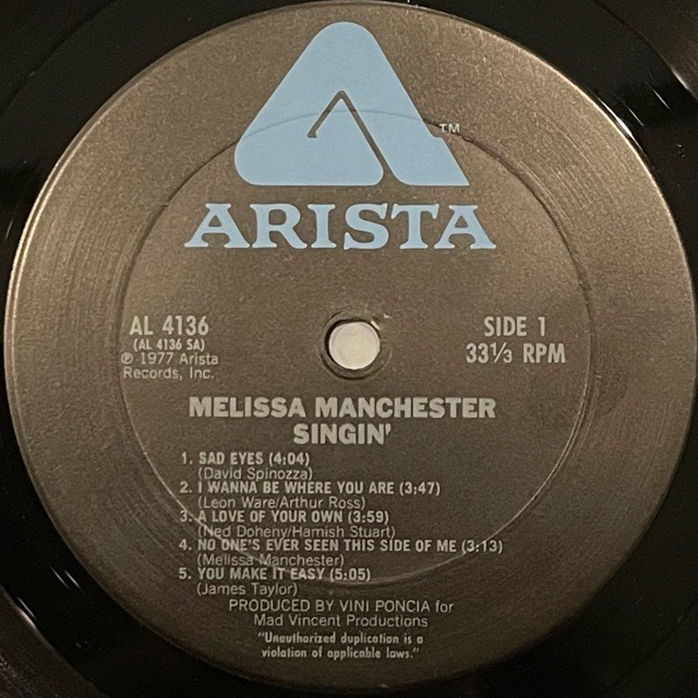 ブロンクス出身の女性シンガーMelissa Manchesterが77年にリリースしたアルバム。Leon WareがMichael Jacksonに提供した名曲A2「I Wanna Be Where You Are」の柔らかい素晴らしいカバー、Ned Doheny作のLight MellowなA3「A Love Of Your Own」、Sly & The Family Stoneの名曲カバーとなるB1「Stand」などを収録!USオリジナル!!
