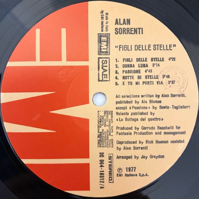 イタリアのシンガー/コンポーザーAlan Sorrentiが77年にリリースしたイタリアンAOR名盤!