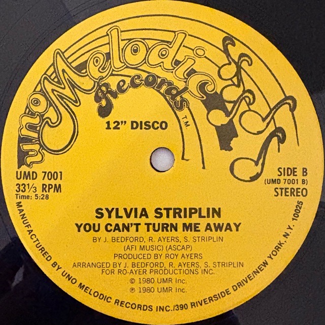 Roy Ayers率いるEighties Ladiesのメンバーとしても活躍した、哀愁と都会的色気を併せ持つジャズ/ソウル/R&Bの女性シンガー、Sylvia Striplinが80年に残した12inch!Roy Ayersが立ち上げたレーベルUno Melodicからのリリース。