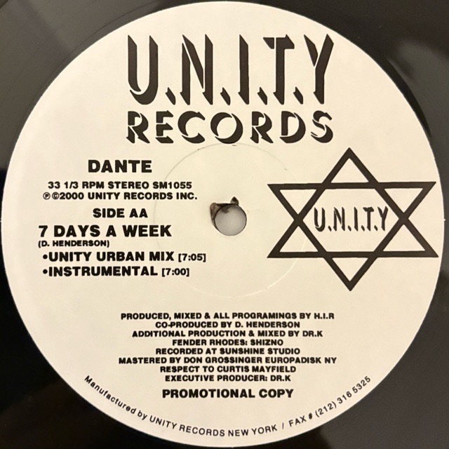 アルバムリリースは無い男性シンガーDanté HendersonことDanteの2000年リリース12inch!