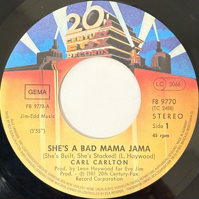 デトロイト出身のシンガーCarl Carltonがに81年リリースした上半身裸ジャケの4枚目アルバムからカットしたディスコクラシック「She's A Bad Mama Jama 」、