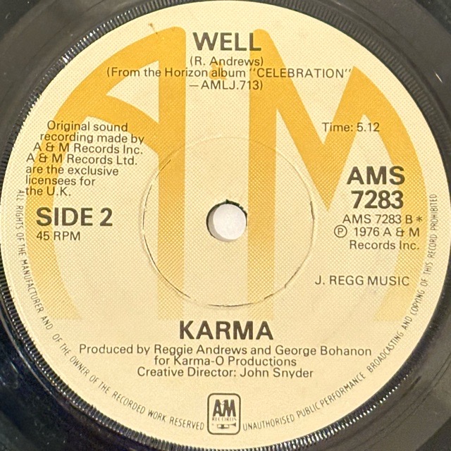 2枚のアルバムを残す7人組ファンク〜ラテン・グループKarmaか76年に残した1stアルバム「Celebration」からのカットシングル