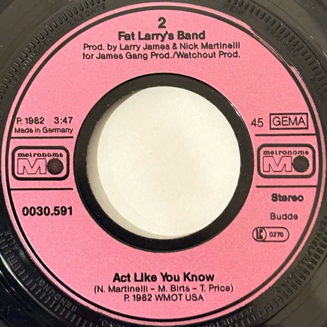 高い演奏力をもつペンシルベニア州フィラデルフィア出身のFat Larry's Bandが82年に残したアルバム「Breakin' Out」からカットしたシングル