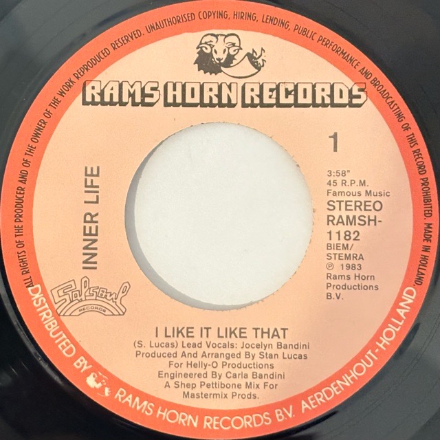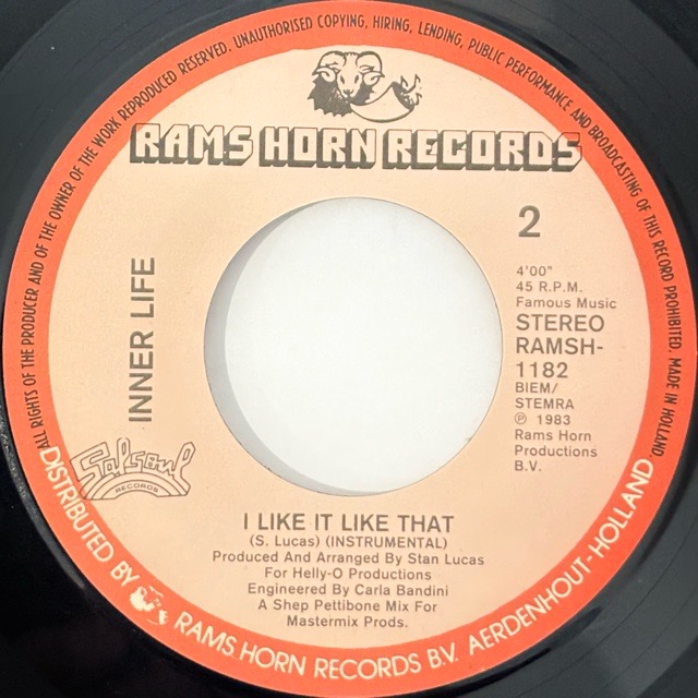 「I'm Catch Up(In a One Night Love Affair)」「Ain'tNoMountainEnough」など、Larry Levan、Patrick Adamsなどニューヨークの重鎮が多く関わってきたスタジオプロジェクトInner Lifeが88年に放ったアルバム「Inner Life Ⅱ」からのカットシングル。
