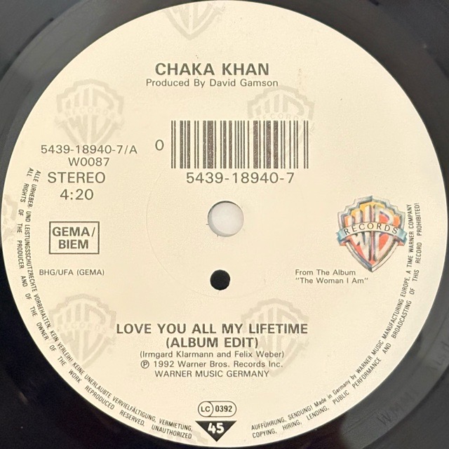 Rufusでの活動で成功を手にしたソウルディーヴァ、Chaka Khanの92年のアルバム「The Woman I Am」からのカットとなる人気曲の7inch