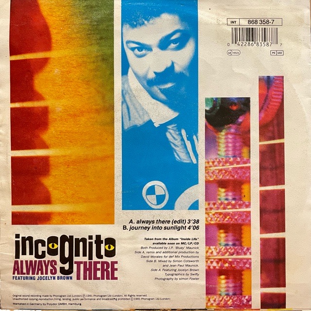 英国のAcid Jazzを代表するバンド、Incognitoが91年にリリースしたアルバム「Inside Life」からのシングル・カット7inch。