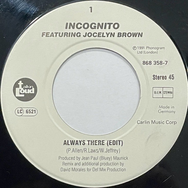 Jocelyn Brownをヴォーカルに招き、Willie BoboやRonnie Lawsなどのカバーも人気の名曲「Always There」をJazzy Houseっぽくアレンジした人気カヴァーバージョン!カップリングはゆったりとしたMellow Jazzy Fusionでこちらも最高です。