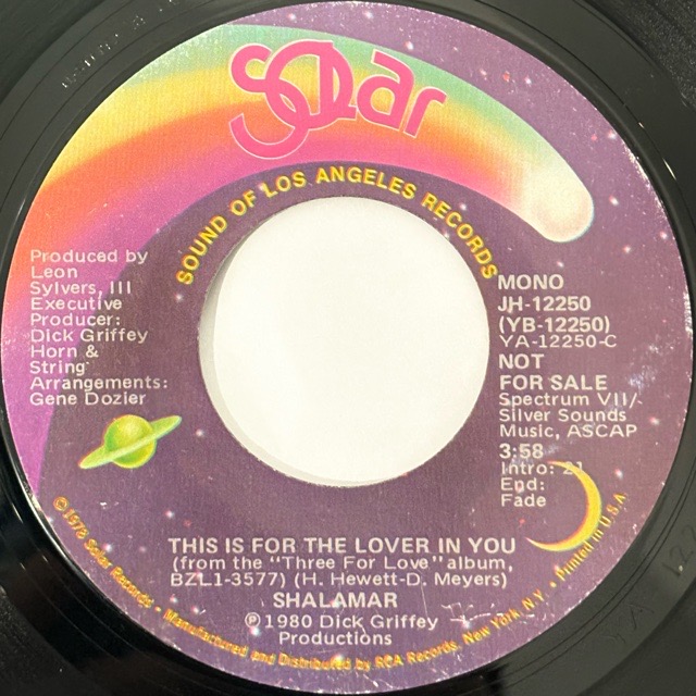 Jody Watleyが在籍したSolorレーベルを代表するトリオShalamarが80年に残したアルバム「Three For Love」からカットしたシングル。