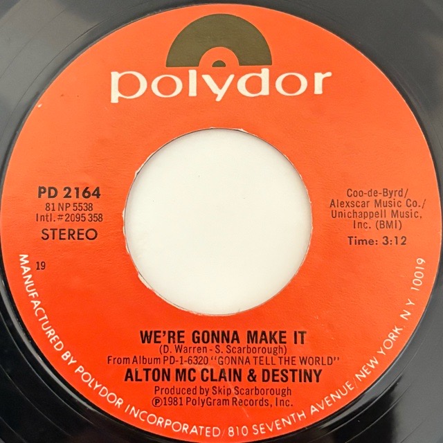 「It Must Be Love」や「Crazy Love」でお馴染みの女性ヴォーカルトリオAlton McClain & Destiny が81年に残した3枚目のアルバム「Gonna Tell The World」のハイライトとなった「My Distiny」のレアシングル!