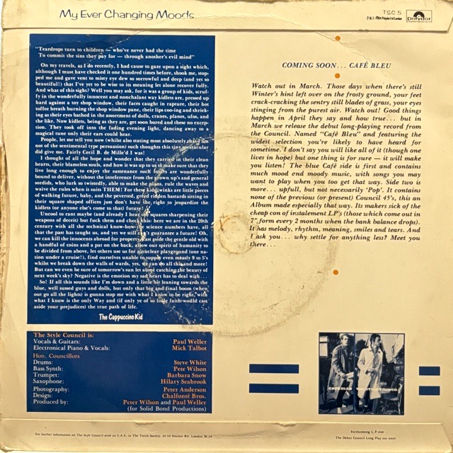 シンガー/コンポーザーとして活躍するPaul Wellerを中心としたデュオStyle Councilが84年に残した大ヒット曲の7inch!イントロから高揚感マックス!