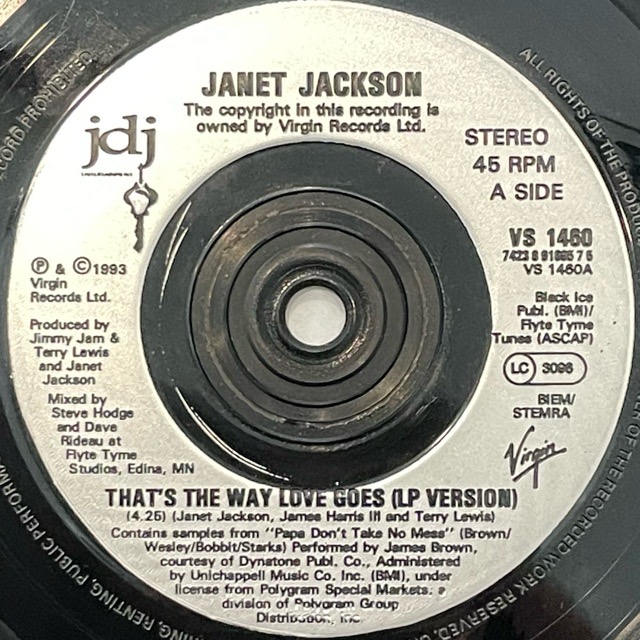 R&B界を代表する女性シンガー/パフォーマーJanet Jacksonの5枚目となる93年作「Janet」からのカットとなる7inch!