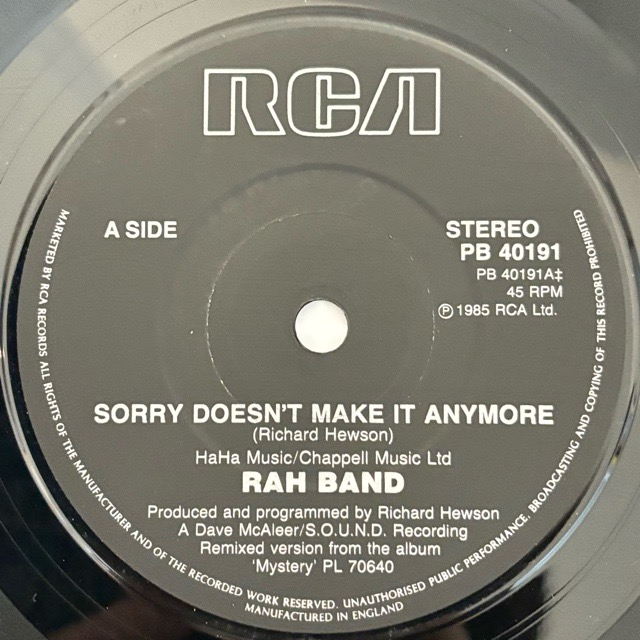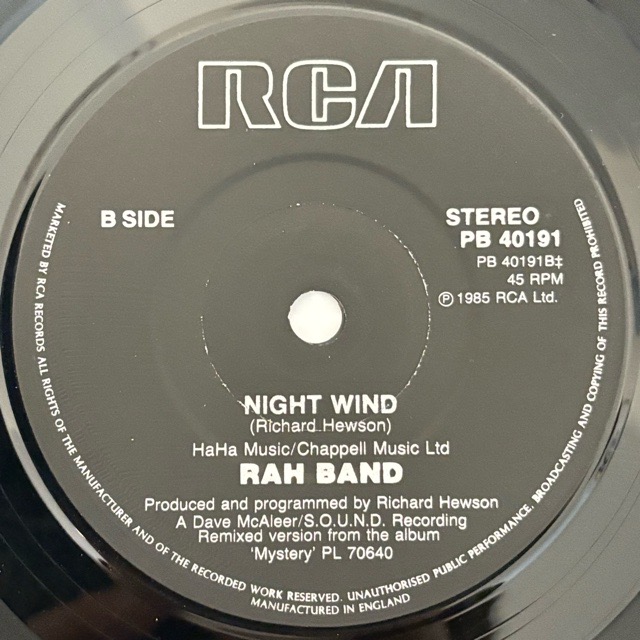 Beatlesをはじめ、60年代後半から数々の作品のアレンジを出掛けてきた英国のアレンジャーRichard Anthony Hewsonを中心としたプロジェクトRah Bandが85年に残したシングル。