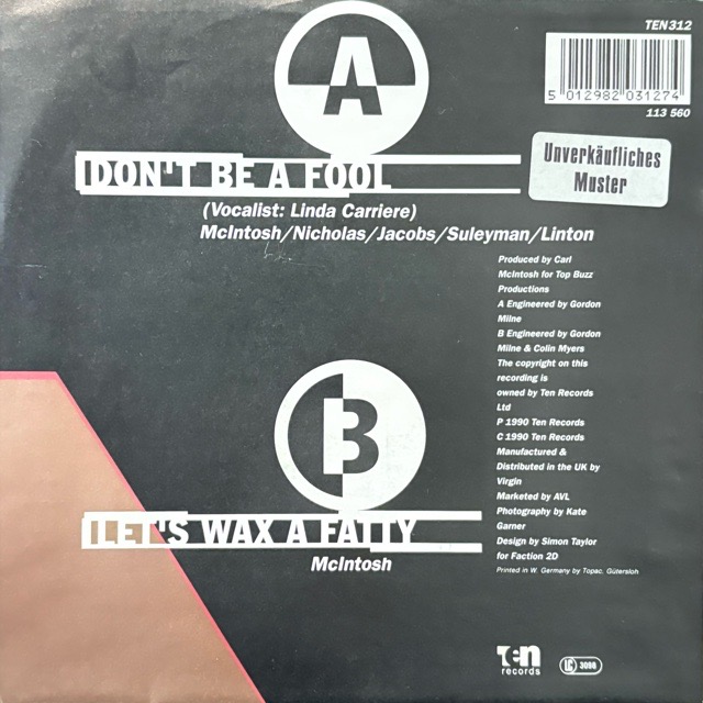 ドカドカと打ち込まれるブレイクビーツに「Shaft in Africa (Addis)」と「Synthetic Substitution」をまぶしたUKソウル〜R&Bクラシック「Don't Be a Fool」と、彼らならではのセンスがひかるインスト・ナンバー「Let's Wax A Fatty」をカップリングした7inch!