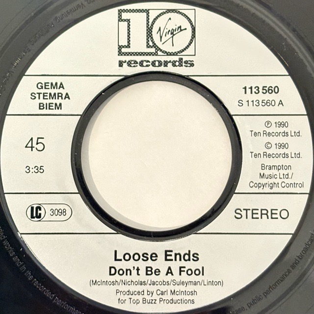 Carl McIntoshを中心としたUKのソウルグループLoose Endsが90年に残したアルバム「Look How Long」からのカットとなるシングル