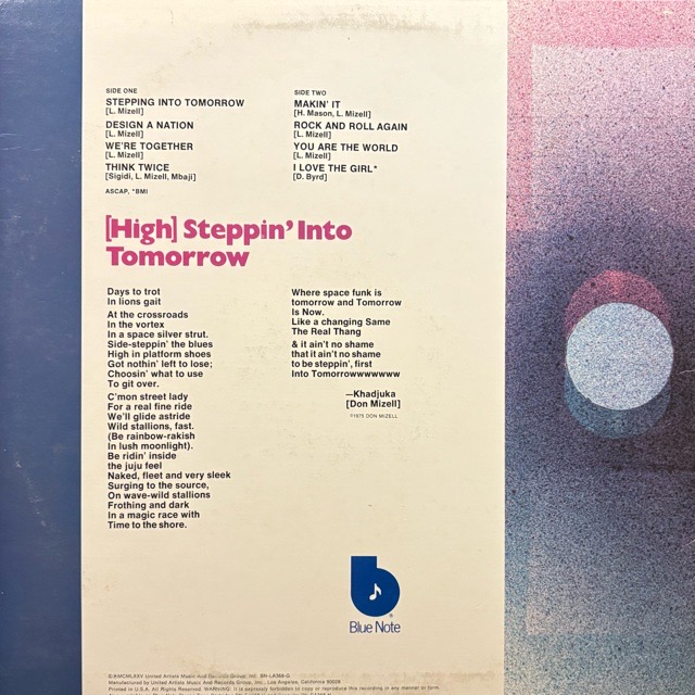 アルバムの冒頭を飾るA1「Stepping Into Tomorrow」はコズミックなジャズ・ファンクで、Madlibが手掛けたリミックスでも注目されたフュージョンクラシック!