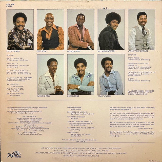 ミッドテンポでジワジワと熱を帯びていく展開や中盤から吹き荒れてゆくホーンに痺れるB3「Dream World」、華やかに煌びやかに疾走するディスコトラックA1「Galaxy of Love」、エレガントなピアノやホーンが絡みつく流麗なディスコB3「I'm Gonna Love You Forever」など、アルバム通して素晴らしいファンキーチューン満載!