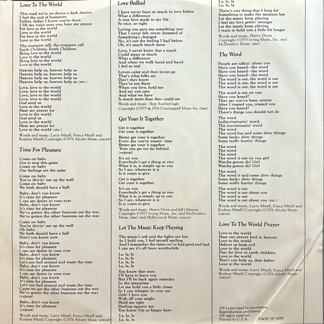 美しいコーラスとメロウな雰囲気のB4「Love To The World Prayer」など、