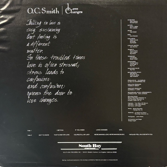 名門Count Basie楽団のヴォーカリストとして活躍したO.C.Smith 82年のアルバム