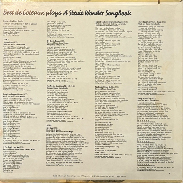 Marlena ShawnやMain Ingredientなどの作品を手がけたアレンジャーBert De CoteauxがStevie Wonderの名曲をアレンジしてカバーした75年リリース作。