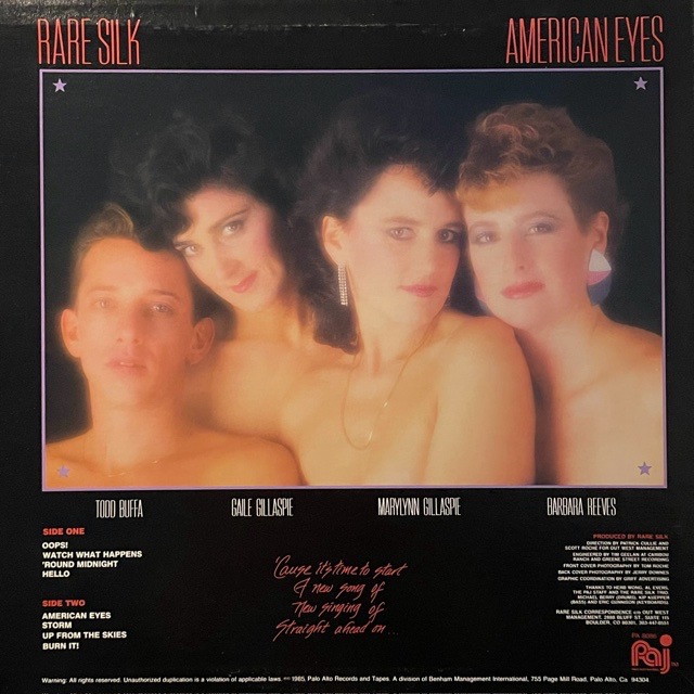 コロラド発、男女混成4人組ジャズ・ヴォーカルグループRare Silkが人気作「New Weave」に続き85年に残した2ndアルバム。