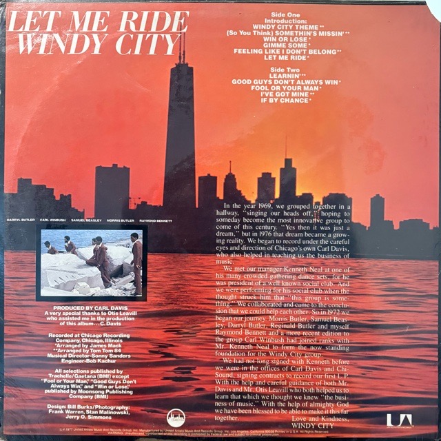 シカゴの5人組ソウル・ヴォーカルグループWindy Cityが残した唯一の77年リリースアルバム。