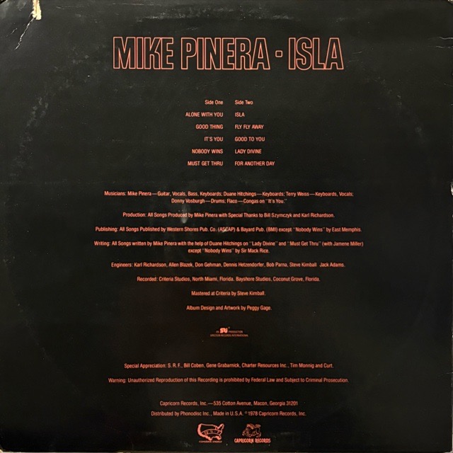 「Blues Image」などで活動していたフロリダ出身のブルースロック・ギタリスト、Mike Pineraがソロ名義で77年にリリースしたアルバム。