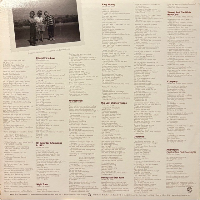 シカゴ出身のシンガーソングライター、Rickie Lee Jonesが79年に残した記念すべき1stデビューアルバム。