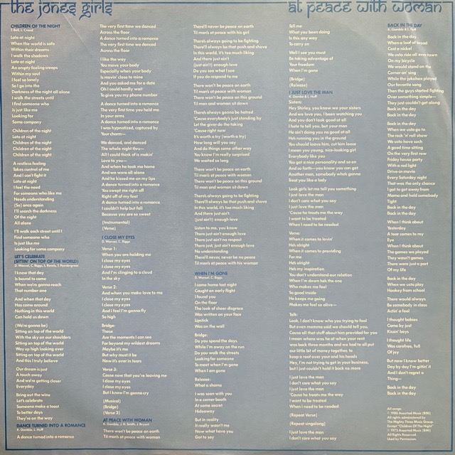 そして続くドラマチックなB2「When I'm Gone」は、Pete Rockが「Standard」でサンプリング!Stylisticsのカバーとなるメロウソウル「Children Of The Night」、しっとりとしたアーバンスムースダンサーA2「Let's Celebrate (Sittin' On Top Of The World)」、Yvette Michele「Crazy」で使われたグルーヴィーソウルA3「Dance Turned Into A Romance」を収録した最高の1枚
