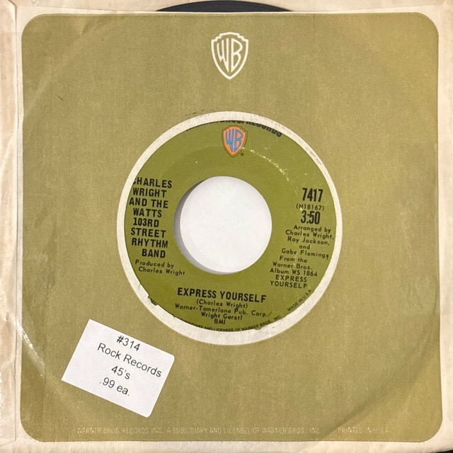 60年代半にカリフォルニア州ロサンゼルスにて結成されたCharles Wright率いるファンクバンドが70年にWarner Brosよりリリースしたアルバム「Express Yourself」からのタイトルカットとなる7inch