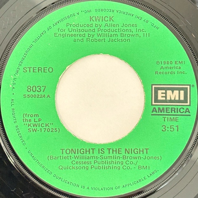 メンフィスの4人組ソウル/ファンクバンドKwickが80年に残した1stアルバムから2曲をカットしたシングル。