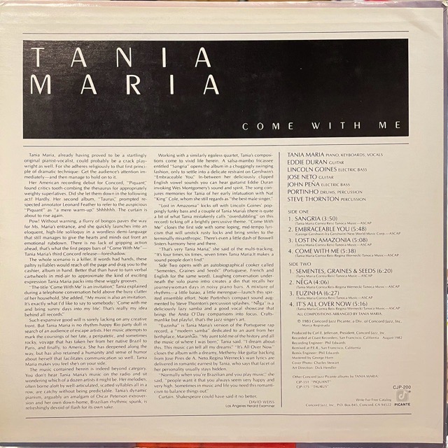 現在でも活躍を続けるブラジル出身の女性シンガー/ピアニストとしTania MariaがカリフォルニアのレーベルConcord Jazzから83年にリリースしたアルバム。