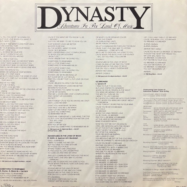 The Silversのプロデューサー/ソングライターのLeon SilversとSolarレーベルの代表Dick Griffyがロサンゼルスで結成し、79年から88年にかけてSolorに5枚のアルバムを残したディスコグループDynastyの80年リリースアルバム!