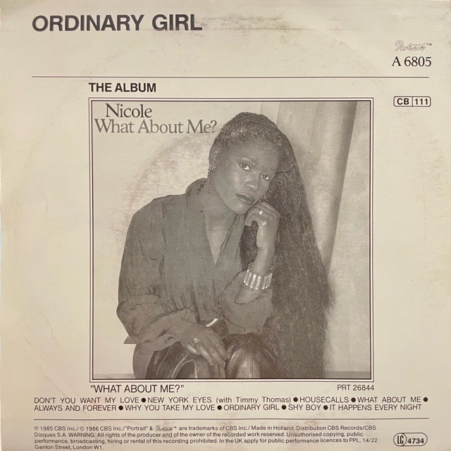 ニューヨーク州ローチェスター出身のダンス、R&BシンガーNicoleの1stアルバム「What About Me」からのカットシングル7inch。