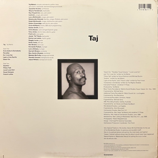 ブルーズを軸にしながら、レゲエ、カリプソ、ソウル、フォークまで幅広く取り入れたTaj Mahalが、80年代に向けて新たなサウンドに挑戦したアルバム。リズムは軽やかでいて深みがあり、曲ごとに異なる色合いを見せる素晴らしい1枚!