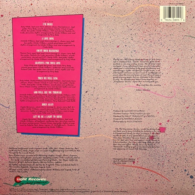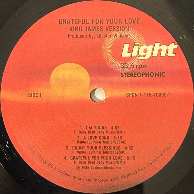 しなやかなミディアムA3「Count Your Blessings」、温もりあるメロウ感が沁みるタイトル曲A4「Grateful For Your Love」など、全体的に宗教色は控えめで都会的にまとめられた好内容。さらにドラムブレイクから始まるB1「Then We Will Sing」など、随所にソウルファン好みのポイントも散りばめられており、80’sモダンソウル好きにもすんなりハマる一枚!