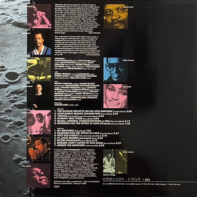 パーカッショニストKip Hanrahanと、アフロ〜アメリカンな詩人Ishmael ReedからなるプロジェクトConjureが88年にリリースしたらアルバム!Bobby WomackやAllen Toussaint、Don Pullen、Steve Swallow、Leo Nocentelli、Robbie Ameenなど、百戦錬磨の腕利きミュージシャンが参加。