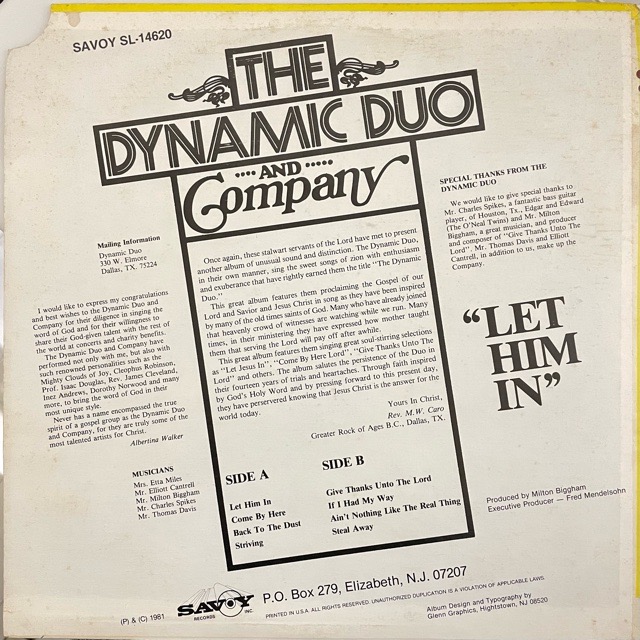 ゴスペルソウルA1「Let Him In」、B1「Give Thanks Unto The Lord」、最高のメロウソウル「Ain't Nothing Like The Real Thing」、モータウンソウル的なB2「If I Had My Way」、B4「 Steal Away」など、良曲満載の隠れ名盤です!