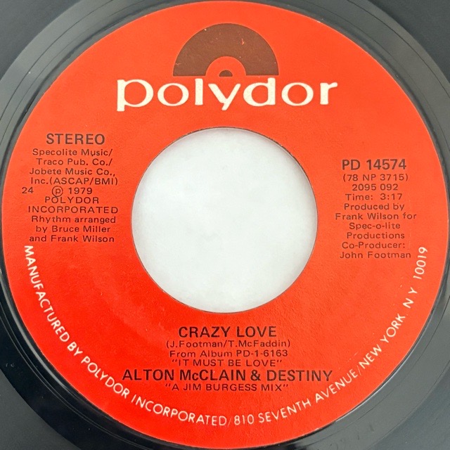 「It Must Be Love」や「Crazy Love」でお馴染みの女性ヴォーカルトリオAlton McClain & Destiny が81年に残した3枚目のアルバム「Gonna Tell The World」のハイライトとなった「My Distiny」のレアシングル!