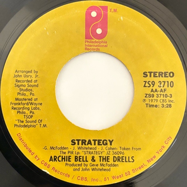 「Tighten Up」や「Don't Let Love Get You Down」などの素晴らしいソウルクラシックを残すをグループArchie Bell & The Drellsが79年にリリースしたグループとしてはラストアルバムとなる「Strategy」のタイトルをカットした7inch!制作はMcFadden & Whitehead