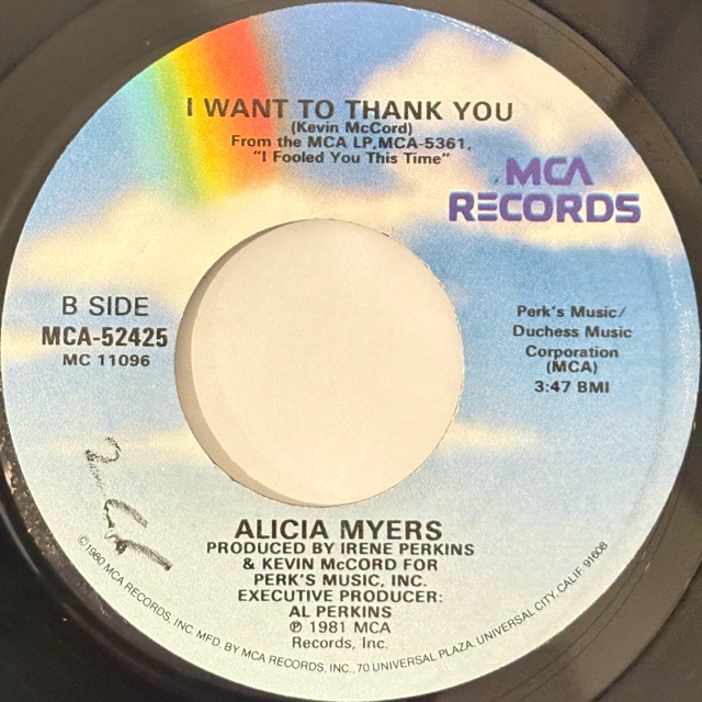 One Wayのヴォーカリストを務めたデトロイト出身の女性シンガーAlicia Myersが84年に残したアルバム「I Appreciate」からカットした「You Get The Best From Me (Say, Say, Say) 」がメインですが、もちろんこちらも素晴らしいポジティブなムードに包まれるダンスクラシックなのですが、このシングルのポイントは裏面です!