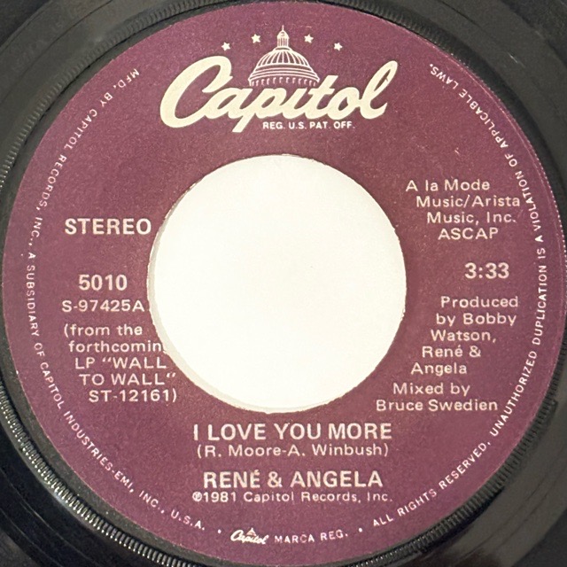 Angela WinbushとRené Mooreの男女デュオ、Rene & Angelaが81年に残したアルバム「Wall To Wall」からのカットシングル。