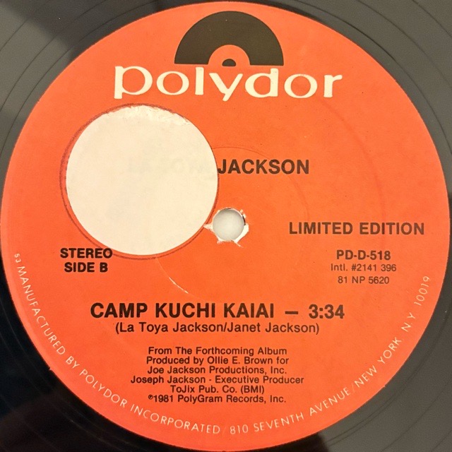 Michael JacksonやJanet Jacksonを兄弟にもつ Jackson ファミリーのLatoya Jacksonが81年にリリースしたアルバムからのカット。DJ Muroさん「Diggin' Ice」に収録された極上のメロウソウル「Camp Kuchi Kaiai」、Ken Gold作、Billy Oceanのテイクでお馴染みのディスコクラシック「Stay The Night」ともにグレイトな12inch!