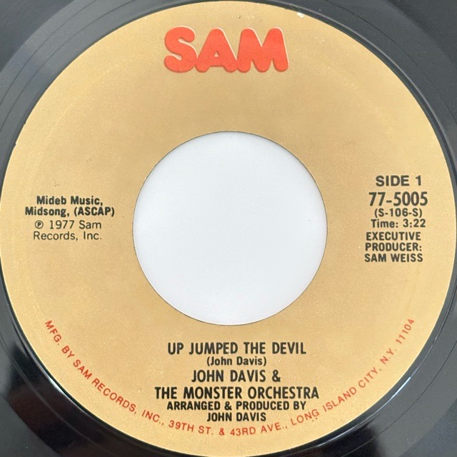 John Davis & The Monster Orchestraが76年にSAMレーベルよりリリースしたアルバム「Night and Day」からのカットシングル7inch!