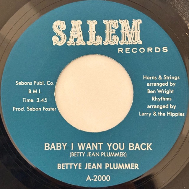 アルバム・リリースはなくシングルを数枚残すのみで幕を閉じたテネシー州メンフィス出身の女性シンガーBattye Jean Plummerが71年にSalemレーベルに残したシングル。