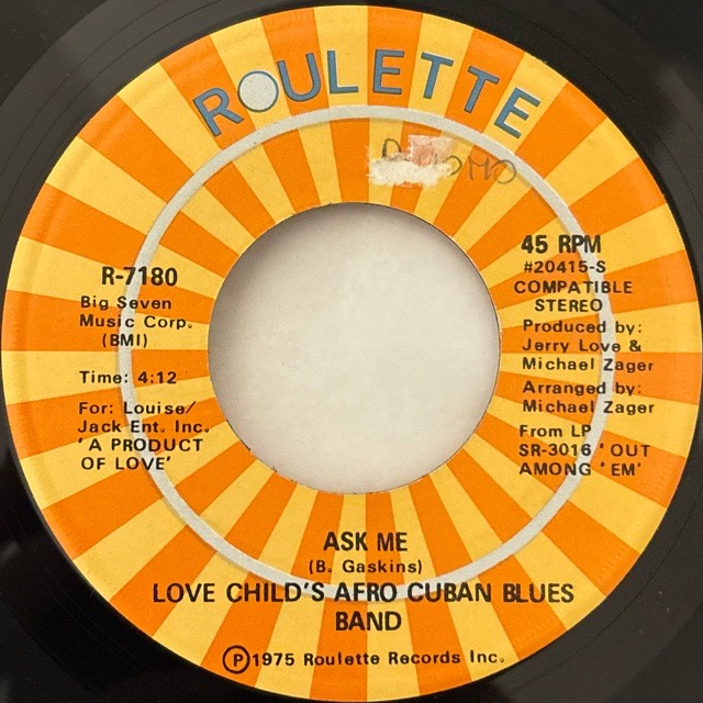 ディスコの住人Michael Zagerがプロデュースし、自らもメンバーのひとりとなったN.Y.のスタジオ・バンド、Afro-Cuban Bandの前身Love Childs Afro Cuban Blues Bandによる名曲カバー2曲をカップリングしたシングル!