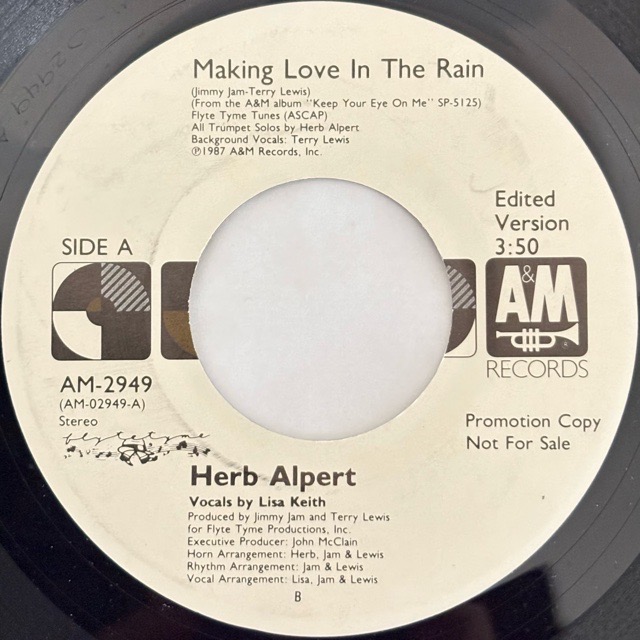 62年にパートナーであったJerry MossとA&Mレコードを設立したHerb Alpertの87年のシングルレコード。
