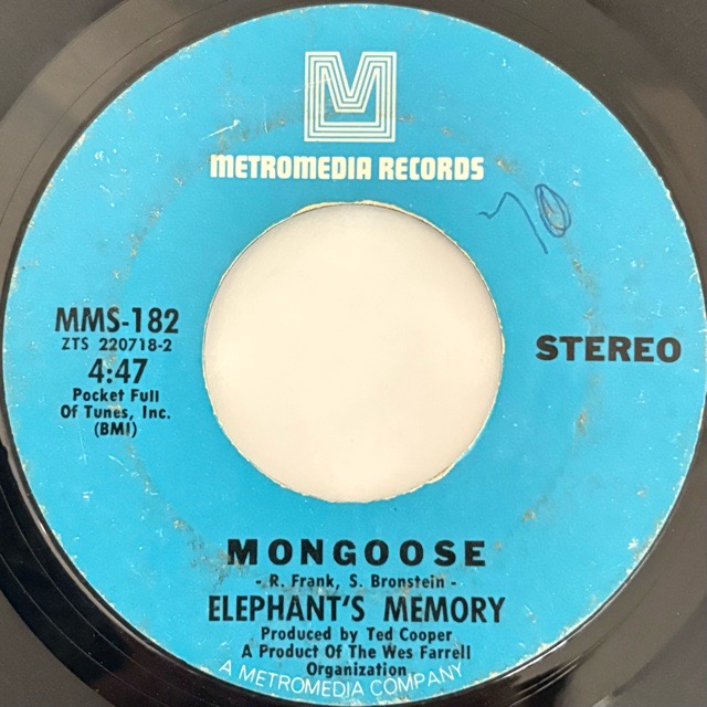 71年から73年にかけて、ジョン・レノンとヨーコ・オノのバック・バンドとして支えたニューヨーク発のロックバンドElephant's Memoryが70年に残したシングル。