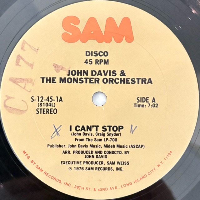 John Davis & The Monster Orchestraが76年にSAMレーベルよりリリースしたアルバム「Night and Day」からのカットシングル7inch!